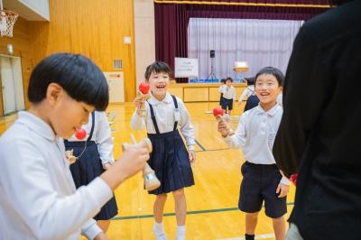 2月5日(水)雪の中、令和7年度に小丸山小学校の1年生になるお子さんと保護者の方を対象に『新1年生を迎える会と学校説明会』が行われました。新1年生は、1年生がはりきって準備した遊びを楽しみました。保護者の方が学校説明会に参加している間、5年生が読み聞かせやけん玉で新1年生と一緒に過ごしました。