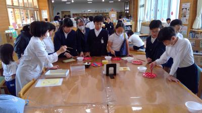5年生の家庭科に御祓地区の民生委員の方がサポートに来てくださいました。