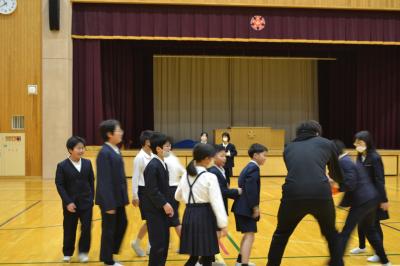 11月6日(水)5・6年生が集会でまだらを披露しました。お世話になったまだら保存会の講師の方にも見て頂きました。ありがとうございます。