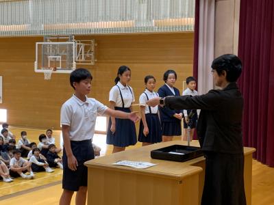 10月5日後期児童会の任命式を行いました。児童会役員・委員長が力強く自分の思いを伝えてくれました。