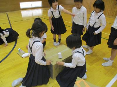 10月30日(月)延期になっていた小丸山会場での器械運動交歓会が行われました。小丸山会場には、小丸山小学校の他に田鶴浜小学校、朝日小学校、中島小学校、能登島小学校が集まりました。