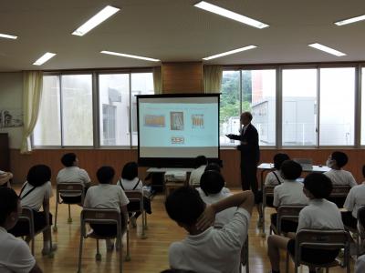 6月15日(木)4年生が防災教室を行いました。市役所の防災課の方から防災の種類や自分の命は自分で守ることの大切さを教えていただきました。