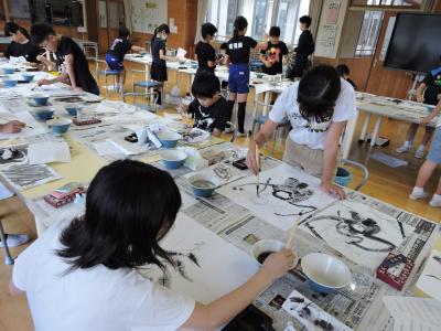 6月16日(金)小丸山小学校の元校長先生でもある橋元道彦先生を講師にお迎えし、水墨画体験をしました。自分で墨をすり、模写しました。長谷川等伯のことを学んでいる5年生によって、よい体験となりました。
