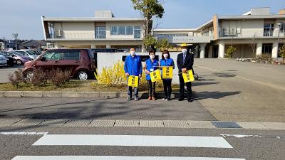4月11日(月)民生委員の方が3名、校門前で朝の挨拶運動に来てくださいました。そして、なんと黒崎教育長も一緒に参加してくださいました。皆様、ありがとうございます。
