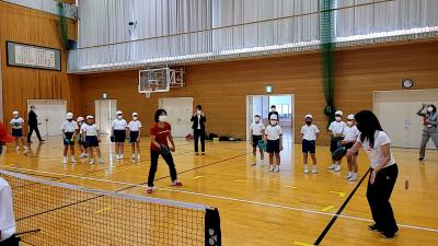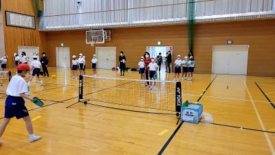 4月18日(月)能登和倉国際女子オープンテニスの関連行事として、小丸山小学校の5年生が「テニピン」を体験しました。講師には、元プロ選手の佐藤直子さんが来てくださいました。テニピンとは、易しさを追求して、用具とルールをアレンジしたテニス型ゲームです。ボールの打ち方を教わった後、ゲーム形式で楽しみました。また、一般財団法人 服部真二文化・スポーツ財団様からセイコースポーツカウンターを頂きました。
