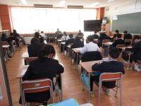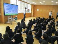 七尾警察署の署員の方のご指導のもと、1・2年生の交通安全教室を行いました。1・2年生合同で、お話を聞いた後、2年生は交通安全動画を視聴し、1年生は校門前の横断歩道を実際に渡ってみました。