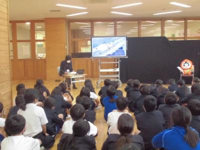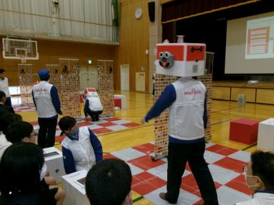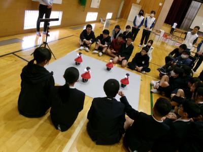 また、細かな動きをするチアリーディングロボットも実演していただき、6年生は「うぉ~」と、喜んでいました。このような体験で得たことをもとに、生活を見る視点が増えたり、理科等に関心を持ってもらえたらうれしいです。