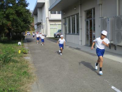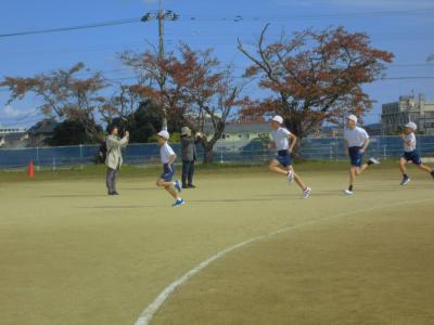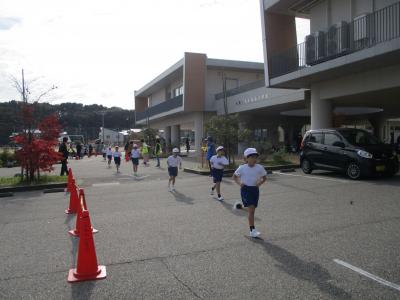 スポーツの秋と言えば、持久走。今年も、御祓地区・西湊地区の民生委員の皆様や育小会の皆様のご協力を得て、学校の周りを走る持久走大会を実施しました。たくさんの保護者の皆様の応援もあり、苦しい顔をしながらも、次々とゴールしていきました。