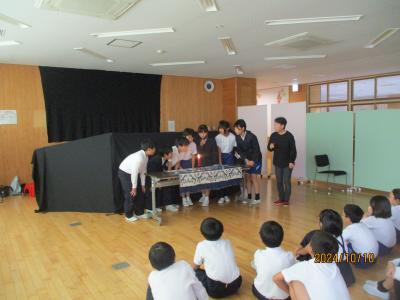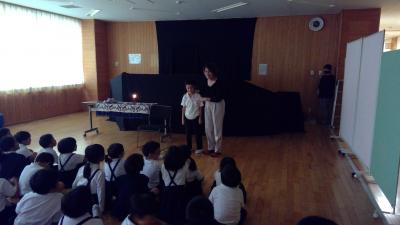 10月3日(水)しびびの会のみなさんが1年生に人形劇を披露してくださいました。今年は『でか山』に関する人形劇でした。