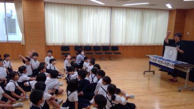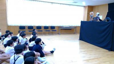 3年生は手遊び歌、紙芝居、青柏祭りのいわれに関する人形劇、5年生は3つのお話と紙芝居を楽しみました。