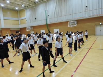 10月23日(水)器械運動交歓会がありました。小丸山小学校会場では、朝日小、田鶴浜小、中島小、能登島小、小丸山小の5校が集まり、鉄棒運動、マット運動、跳び箱運動を行いました。