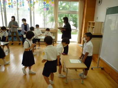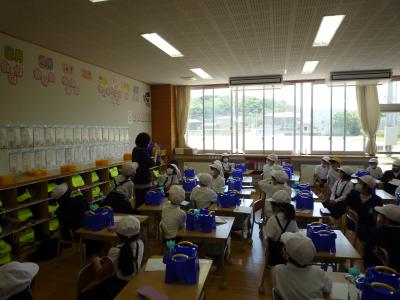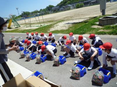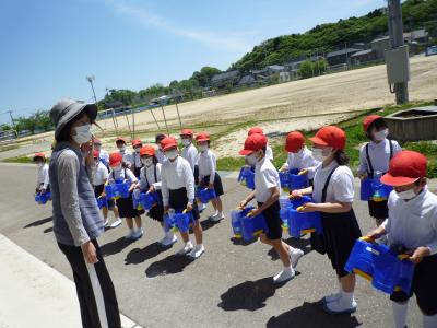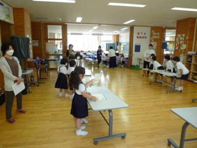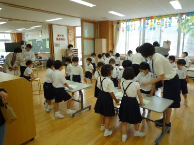 5月31日(火) 3月までお世話になった幼稚園、子ども園、幼保園の先生方が1年生の様子を見に来られました。生活科の授業でした。前半は5感を使ってあさがおを観察し絵にかき、後半は観察して見つけたことをお店やさんの形で伝え合いました。来て下さった先生方、ありがとうございました。