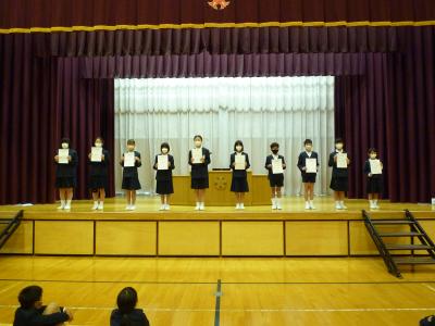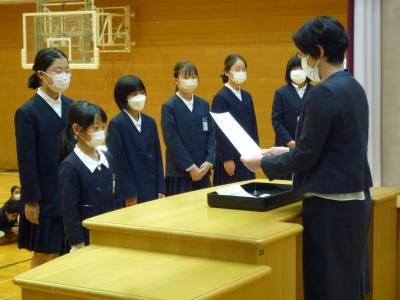 5月11日(水)5月の集会と前期児童会任命式が行われました。1組と支援学級は体育館で、2組は教室でリモート参加でした。児童会役員と委員長は緊張しながらも、しっかりと思いを伝えていました。