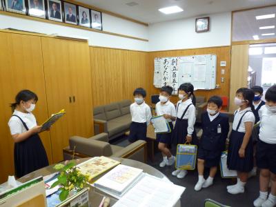 前期児童会が「元気なあいさつができるように」と挨拶運動を行っています。企画委員会を先頭に1週間ずつ各委員会が取り組んでいます。