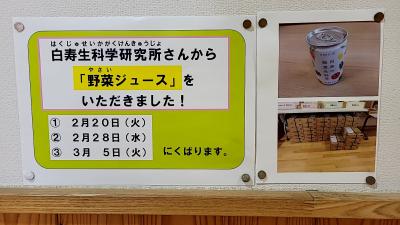 ジュースは本日、2月28日、3月5日の3回提供されます。