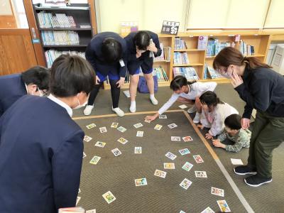 図書室で防災かるた大会が開催されました。