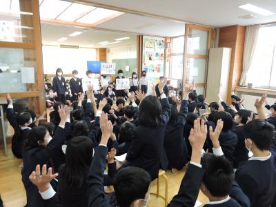 3月4日(月)3年生はテンシーズのみなさんとアウトリーチ体験をしました。みんなで協力して行う楽しい活動でした。