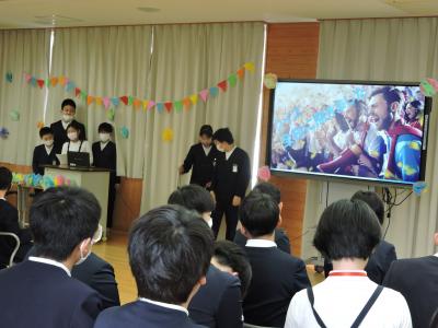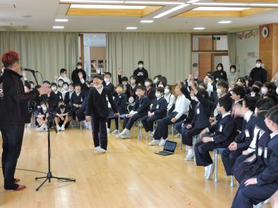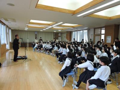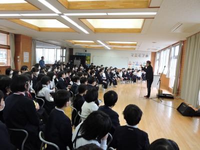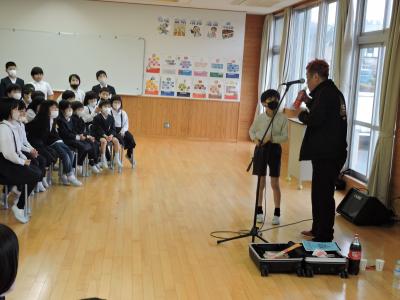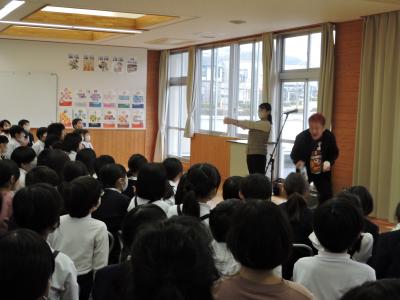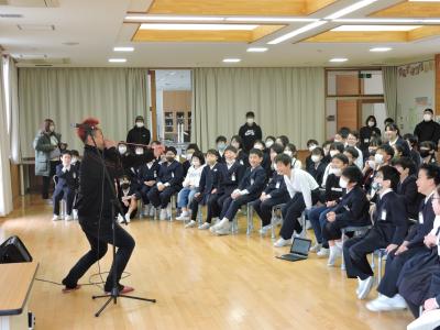 お笑い芸人の「白血球さん」がお昼休みにボランティアで来校してくださいました。