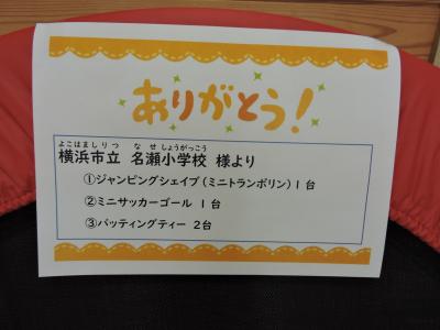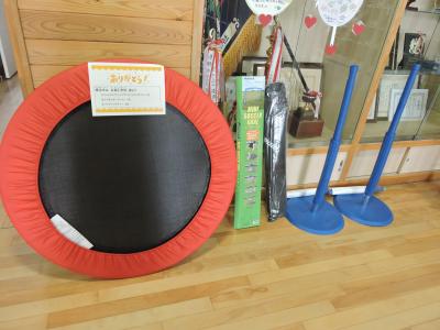 その中から小丸山小学校に①ジャンピングシェイブ②三サッカーゴール③バッティングティーが届きました。嬉しいですね。