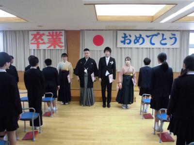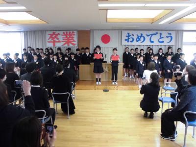 保護者のみな様に近くで見守って頂き、アットホームな卒業式となりました。