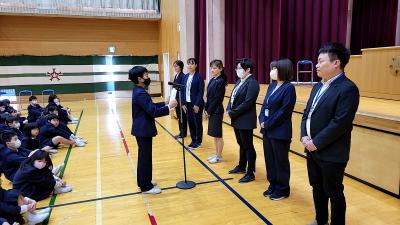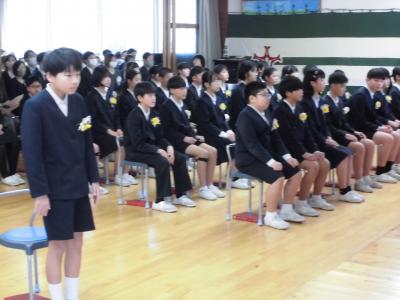 4月5日(金)新任式が久しぶりの体育館で行われました。新しい先生方をお迎えし、小丸山っ子もウキウキ、元気でした。