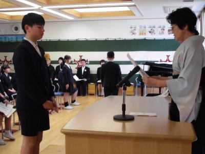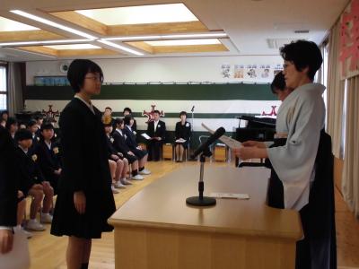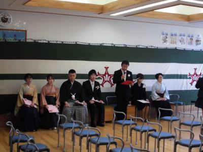 今年は、震災の影響により、体育館ではなくランチルームでの式となりました。