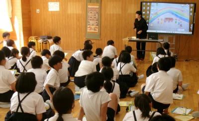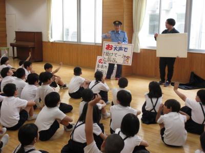 七尾警察署の方を講師としてお招きし、全校での不審者対応避難訓練と4年生対象の防犯教室を行いました。