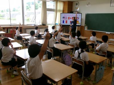 今日は、1年生にとって初めての外国語活動の日で、ALTの先生についてのクイズで楽しみました、