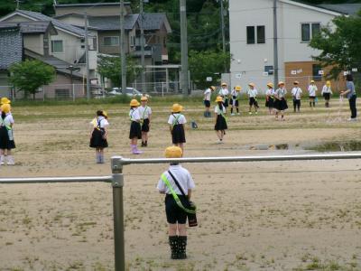 学校まわりの1kmを歩いてみました。実際に歩いてみることで、長さの感覚が分かっていくようです。