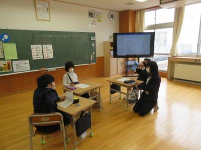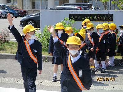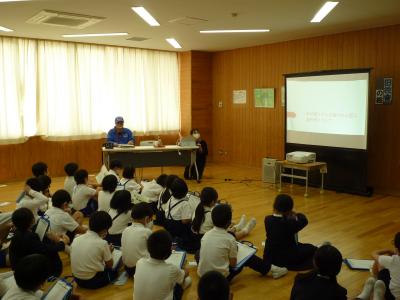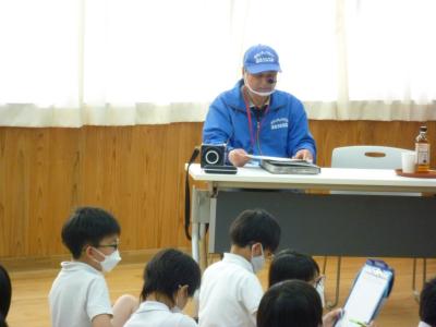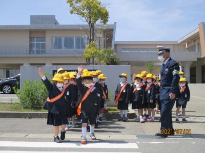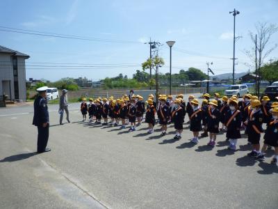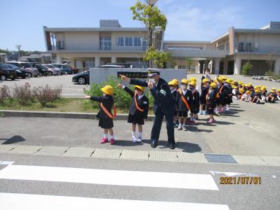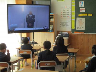 4月28日(木)七尾警察署 交通企画規制係長 藤士 満之氏をお迎えし交通安全教室を行いました。1~3年生はリモートで安全な歩き方や自転車のブレーキの確認の仕方などを教えていただきました。その後、2・3年生はさらにDVDで交通安全について学びました。1年生は学校前の横断歩道で安全な渡り方を体験しました。