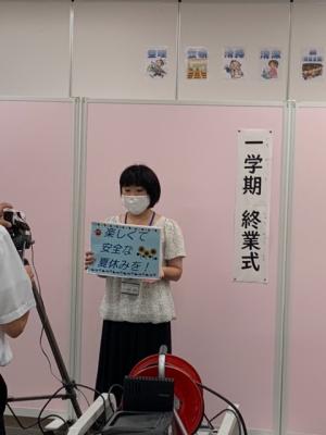 7月20日、1学期始業式が、各教室(オンライン)で行いました。保護者のみなさま、地域のみなさま、ご協力いただきありがとうございました。また、1学期でアメリカにお帰りになるALTのケイシー先生の離任式も行いました。下校時、いつも声をかけてくださったケイシー先生との別れを惜しむ子どもたちの姿が見られました。