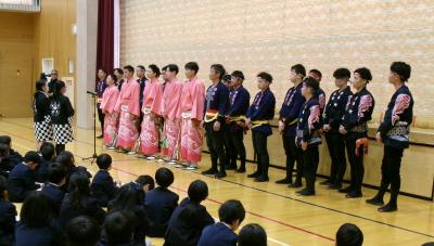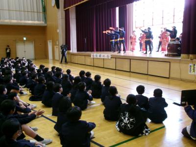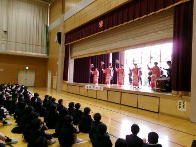 まだらをじっと聴きながらステージを見つめる子どもたちの姿。そして、体育館中に響き渡る「えんや~ えんや~」「わっしょい わっしょい」の声。受け継がれてきた思いや願いを子供たちなりに感じ取っていたようです。