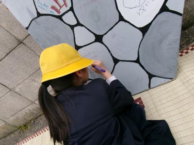 石垣にメッセージを書かせていただいたり、体験もさせていただいたりしました。