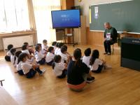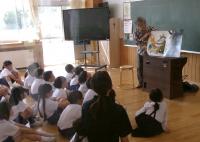 今年度も にゃ〜ご隊の皆様が、読み聞かせにきてくださいます。子供達は、前のめりで聴いています。