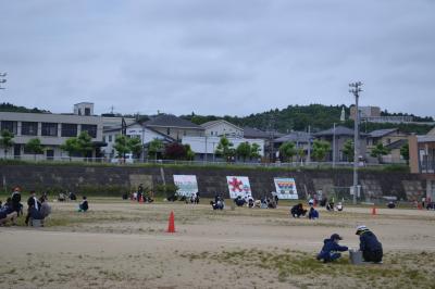 早朝から、多くの皆様に作業いただき、運動場や地下道周辺の除草、校舎裏溝の泥あげなど、皆様のお力でみるみるきれいになっていきました。体育の授業、休み時間と子ども達は運動場で活動しています。安全な環境で思いっきり楽しめます。心から感謝申し上げます。