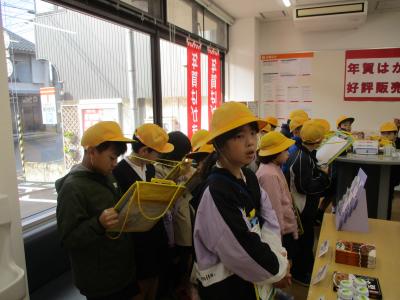 11月27日(月)2年生は1本杉に町探検に出かけました。今回は松本郵便局さんと鳥居醤油店さんにお世話になりました。