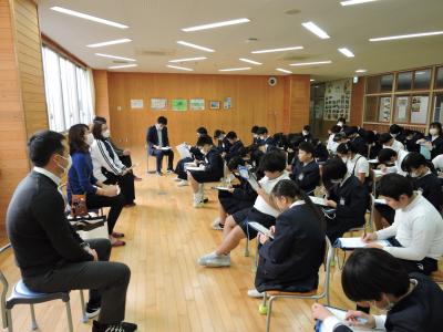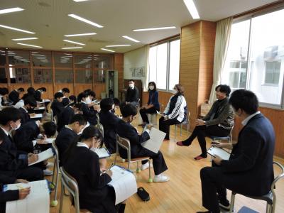 12月8日(金)6年生は3名の保護者+先生1名の方からお話を聞き、メモをとりながら、自分の将来に思いを巡らせました。