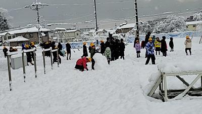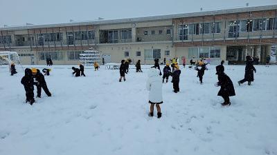 2学期最後の12月22日(金)積雪があり、子どもたちは運動場で思い切り遊びました。