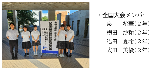 全国大会で得た体験を糧に、来年の全国大会に出場し、上位目指して頑張ります。