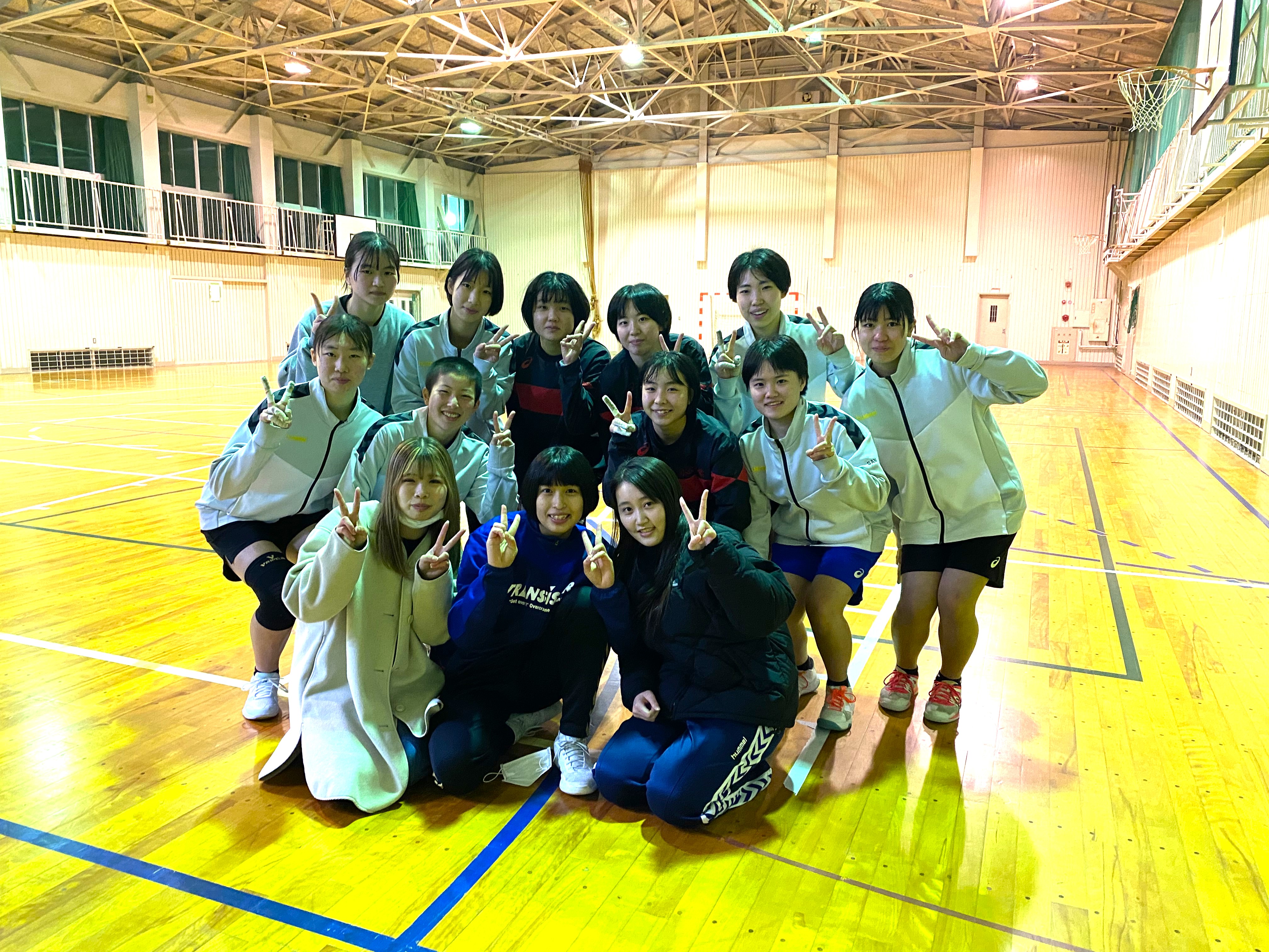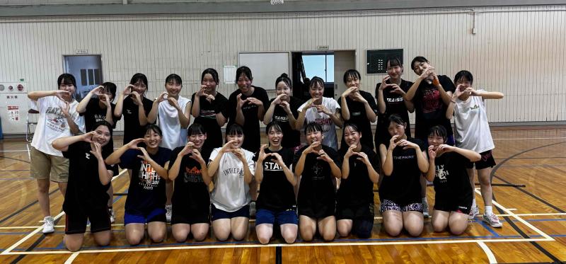 練習の最後には集合写真を撮影! 合同練習を機会にバスケットボール部との仲も良くなったようです。これからもハンドボールの技術向上につながるようなトレーニングを練習メニューの中に取り入れていきたいと考えています。