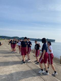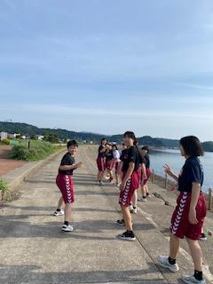 普段、学校での練習はハンドボール部は第一体育館、バスケットボール部は第二体育館で練習をしており、なかなか合同練習する機会はないのですが、今回は合同で練習することになりました。講師の先生の声と手拍子に合わせてリズムよく楽しみながらトレーニングをしていました。