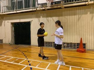 7月14日(月)の放課後、リズムトレーニングを実施しました。本日の講師は一般社団法人スポーツリズムトレーニング協会「STAR」認定トレーナー上瀧葵怜々さん。上瀧さんはバスケットボール3✖3「えちゃけーな能登」に所属しており、選手と講師の二刀流で活躍している方でもあります。