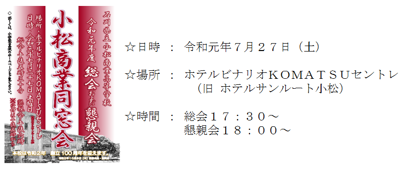 詳細は、「小松商業同窓会」をクリックし、「小松商業同窓会」のページをご覧下さい。