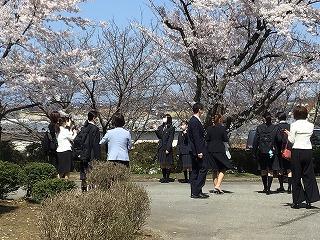 校門では入学式にふさわしく桜が満開に。新入生や保護者の方々にとっても絶好の記念撮影スポットとなりました。