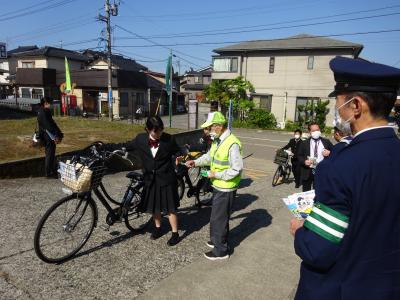 ※本日より本校では、グッドマナーキャンペーンとして登下校時のあいさつや自転車運転ルール・バスの乗降マナーの指導をPTAと公安委員により実施しています。天候もよく、自転車を利用する生徒も多く、大きな声であいさつをしながら登校しました。PTA役員の皆さんをはじめ、地域の方々にもご協力いただき、登校時の交通安全を見守りました。ご協力ありがとうございました。学校近辺では、公安委員による挨拶運動を実施しています。