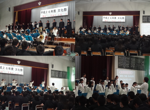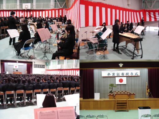 1年生の入場時には当部の演奏と2・3年生の手拍子で迎え入れ、2・3年生での校歌斉唱で、明るい雰囲気を1年生の感じてもらえたかと思います。