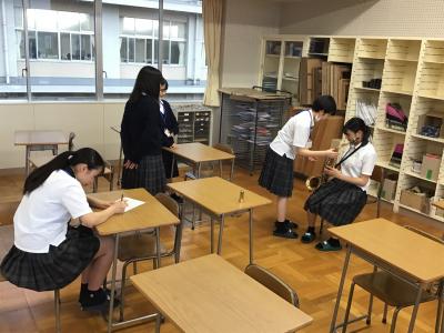 中間テスト終了後に、総体・総文壮行式が行われ、入場曲と校歌を演奏しました。