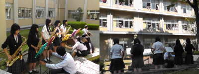 新入生の勧誘期間ということで、演奏を聴いてもらうために部員のみんなも気合が入っています。各教室から生徒の皆さんが覗いて楽しんで見てくれました。