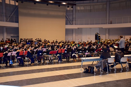 小松市内の中高生が集まって合同練習し、練習曲を発表しました。