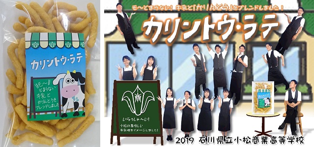 ※毎年行われている、「いしかわ産業教育フェア」に、課題研究商品開発グループが、今年開発した「カリントウ・ラテ」(ミルク味のかりんとう)を販売してきました!校章の入ったカフェラテも同時に販売し好評でした(^_^)v生徒達は、たくさんのお客さんに購入してもらうために工夫を凝らしながら、とってもがんばっていました。貴重な経験ができた一日となりました。